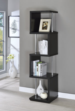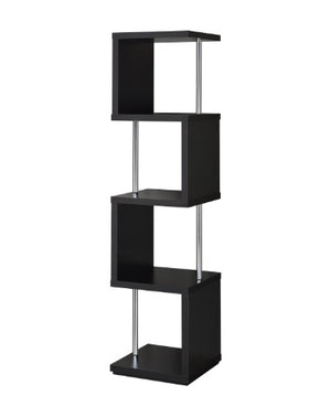 Go with the flow in a modern space with an edgy, artistic look. This four-tier bookcase is a great option for a compact space. Enjoy a modular, geometric silhouette and a choice of finishes. Steel supports reinforce shelving that hosts books and decor. Choose from finishes that intensify the attitude of your custom space.