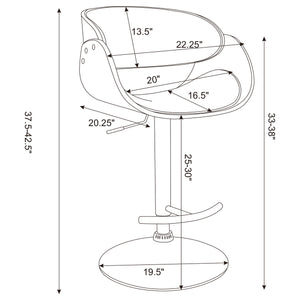 Perfect for a home bar or kitchen island, this barstool is conveniently height adjustable to fit with any space. Beautifully designed, it features a simple, sleek support that flares elegantly into a sturdy, round base. Its seat boasts a cool, curved silhouette with a pleasingly modern feel. The shiny finish of its base creates an appealing contrast to the subdued shades of its seat. With comfortable back and foot rests, it offers maximum support and durability.