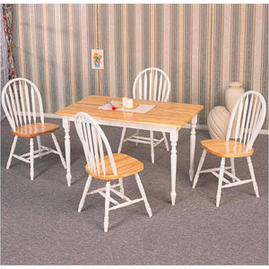 This rustic dining table looks great in a cozy breakfast nook or dining area. Two-tone finish makes this table go great with two-tone dining chairs (not included). Brown solid wood table top is spacious enough for a large breakfast or four-course family dinner. Four white table legs have clean lines and offer durability