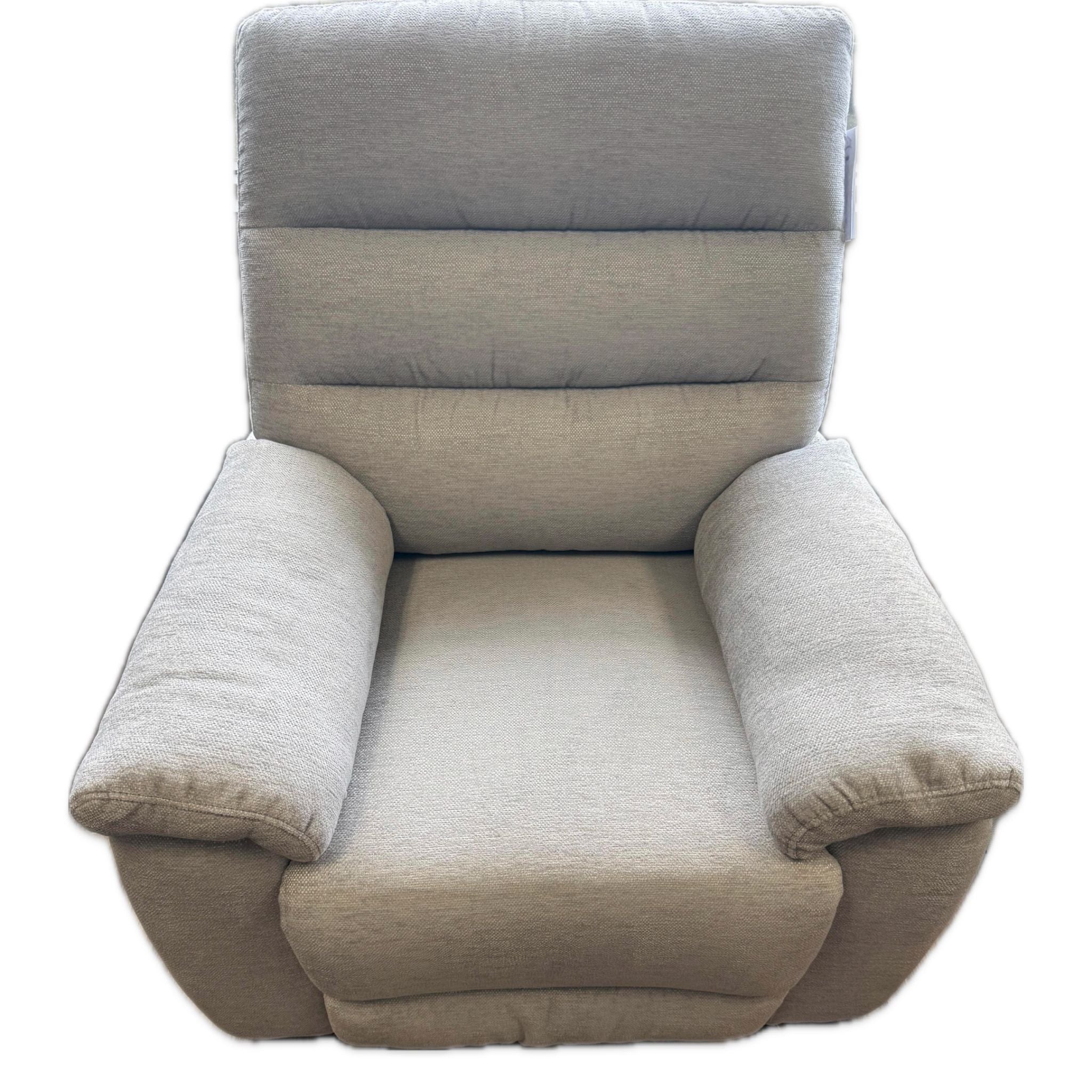 Very comfortable soft fabric recliner comes in light grey and light brown
