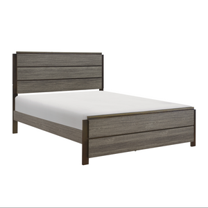 The contemporary styling of the Vestavia Collection provides a unique platform from which to style your bedroom. Faux wood printed veneer provides subtle texture and a gray finish as perfect contrast to the dark brown finish of the base rails of the case pieces and back panels of the queen headboard and footboard.