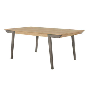 A classic farmhouse design gets a modern update in this gorgeous, wooden dining table. This tasteful piece boasts a spacious, rectangular surface with plenty of room to spread out. The top showcases natural wood grains for a cool, country vibe. A grey leg finish completes the design, giving it an eye-catching, two-tone look. This beautiful, wooden table creates a sturdy and stylish setting for casual family meals.